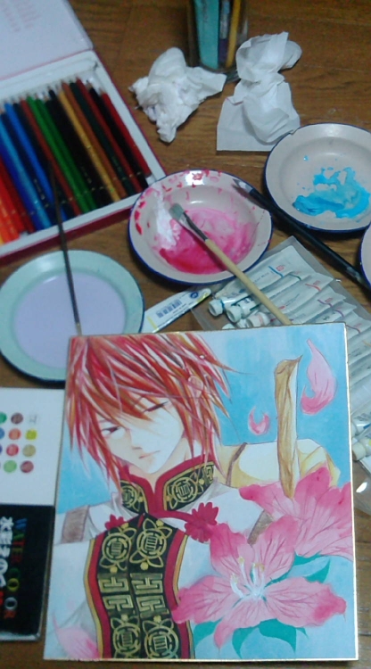 (しかも今回余ってた色紙に水彩という強行突破w)